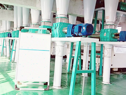 在倉儲、干法清理,制粉及面粉配粉的各道工序完全自動化,日加工小麥200噸的面粉加工生產線。